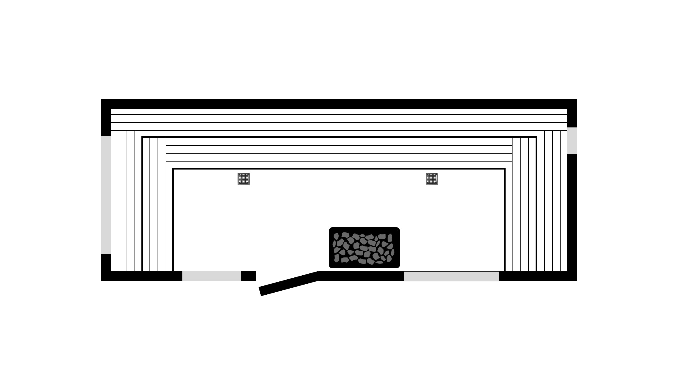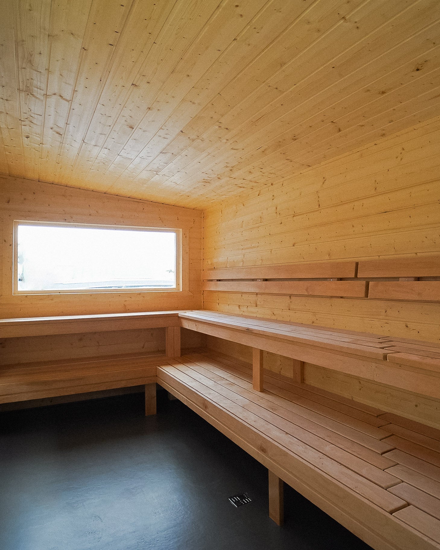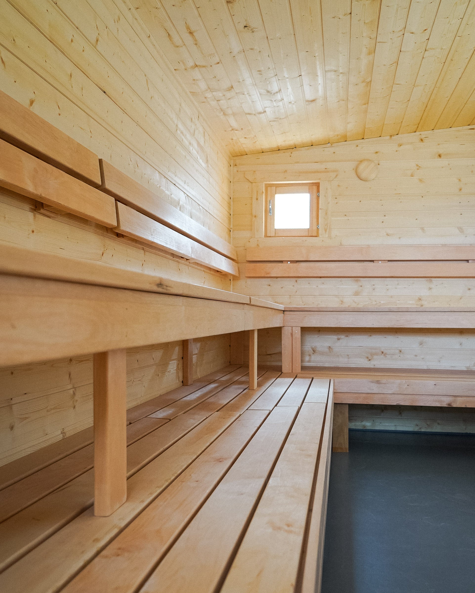 Denne 6 meter lange sauna er til de seriøse fællesskaber og har et fuldt optimeret U-formet bænkesystem i to niveauer, som giver udsigt gennem store, mørktonede panoramavinduer og en glasdør med lås. Indvendigt er den udstyret med varmebehandlede træbænke, vandtæt gulv og fuldt isoleret for maksimal varmeudnyttelse.